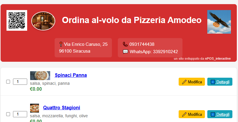 Invia il codice Qr di questo menu ad un amico e organizza una pizzata a casa