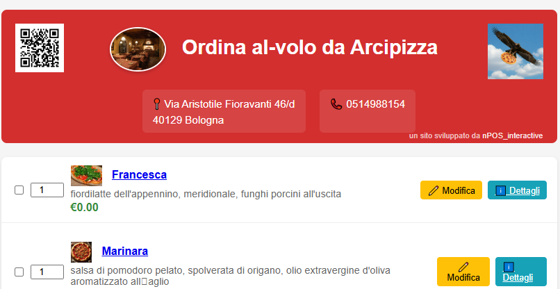 Invia il codice Qr di questo menu ad un amico e organizza una pizzata a casa