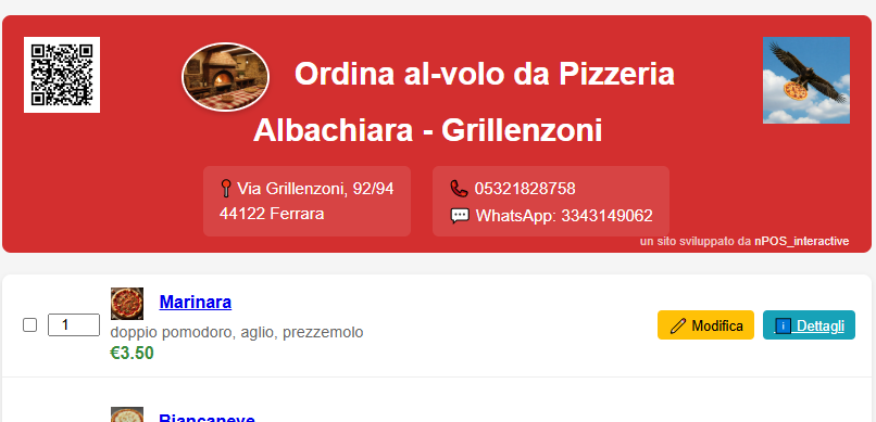 Invia il codice Qr di questo menu ad un amico e organizza una pizzata a casa