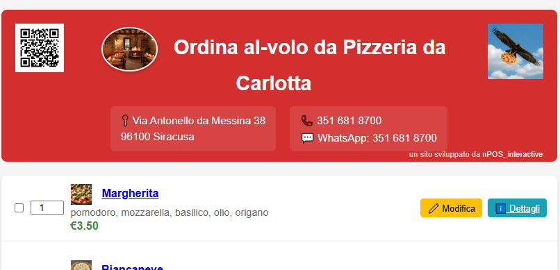 Invia il codice Qr di questo menu ad un amico e organizza una pizzata a casa