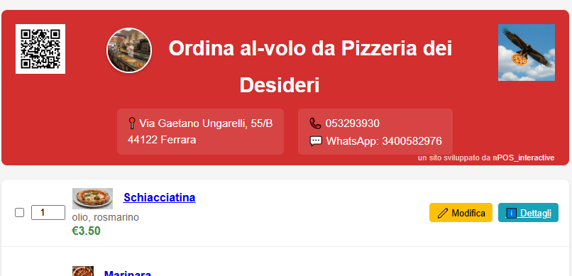 Invia il codice Qr di questo menu ad un amico e organizza una pizzata a casa