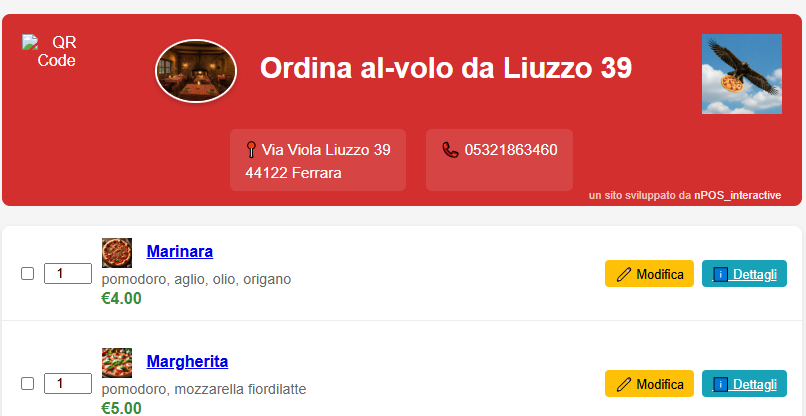 Invia il codice Qr di questo menu ad un amico e organizza una pizzata a casa