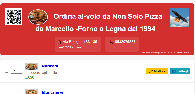 Invia il codice Qr di questo menu ad un amico e organizza una pizzata a casa